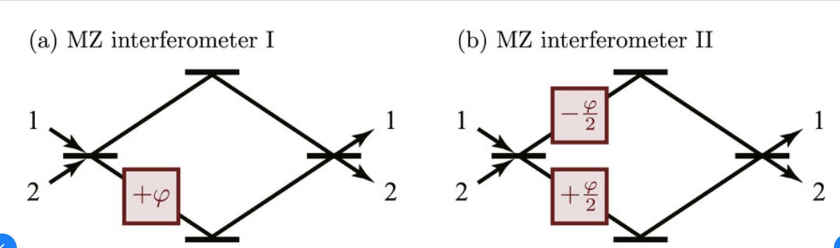 First, let us understand how a Mach–Zehnder modulator (MZM) operates. An MZM works by splitting an incoming optical signal into two interferometer arms. A relative phase shift is then introduced between the two paths. This phase shift can either be applied entirely to one arm as φ, or symmetrically as ±φ/2 across both arms. A visual illustration of the Mach–Zehnder interferometer used in this setup is shown below.